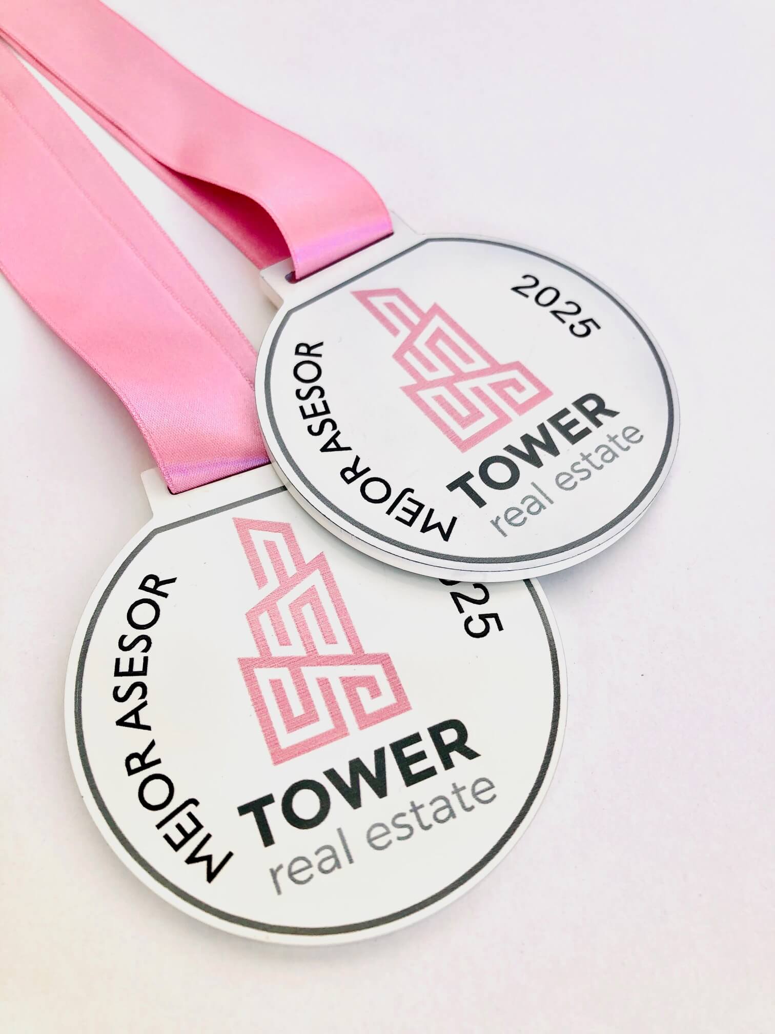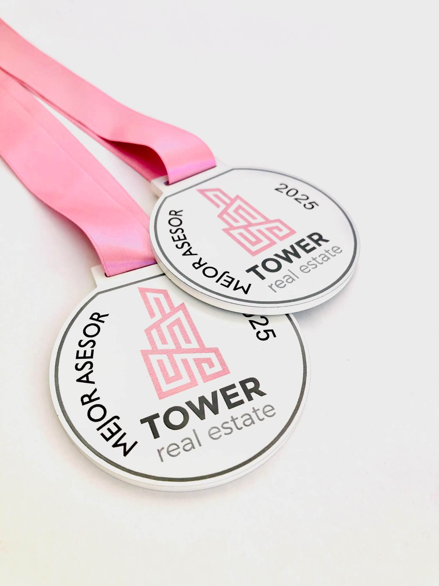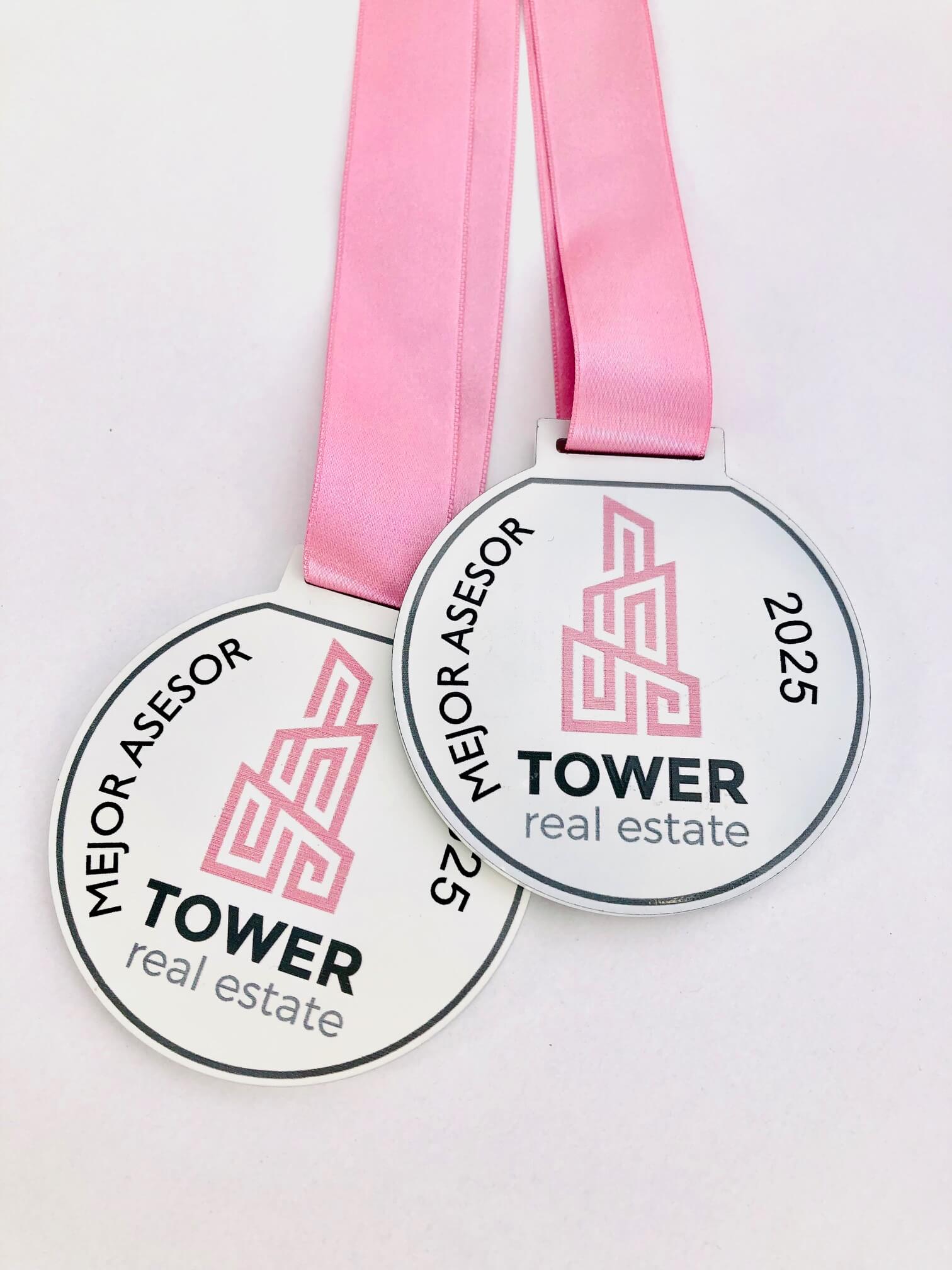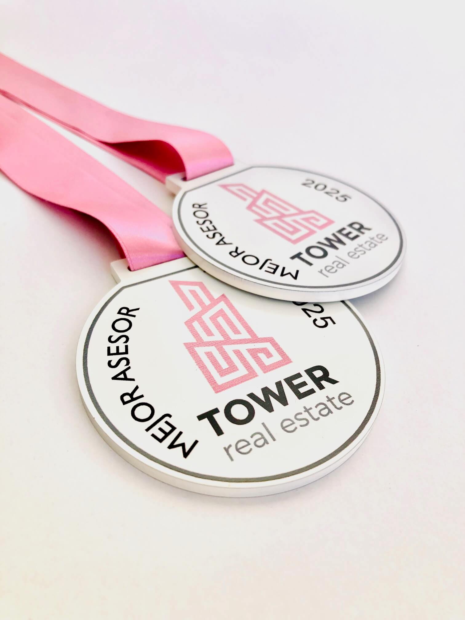Cinta de medalla disponible en varios colores. Grabación dos caras con personalización de textos personalizados.