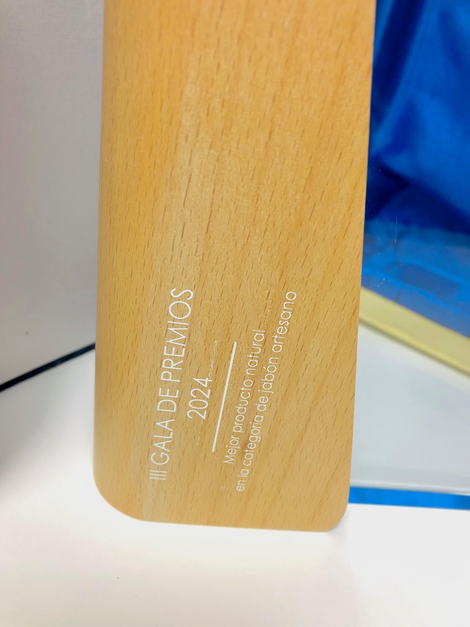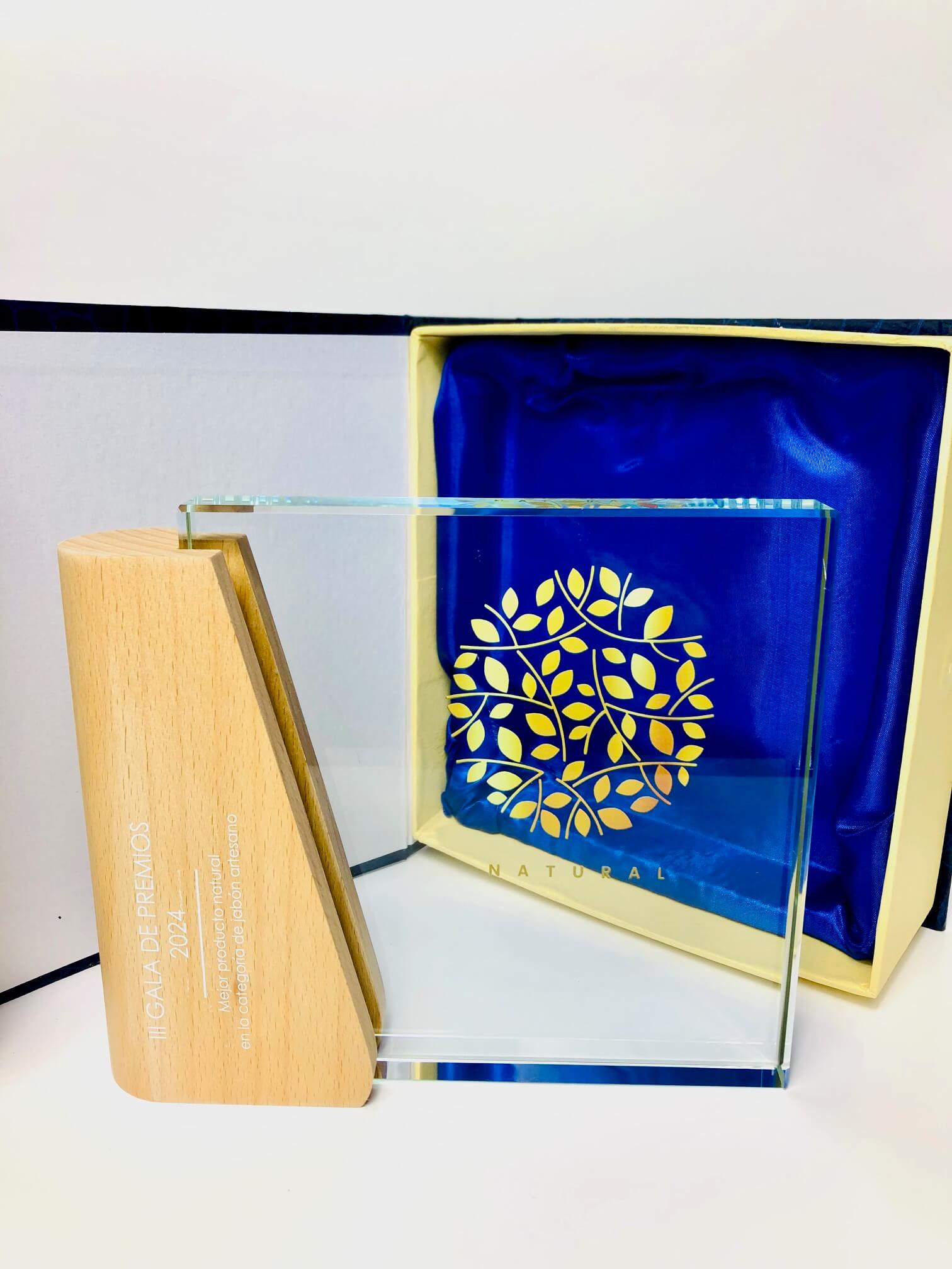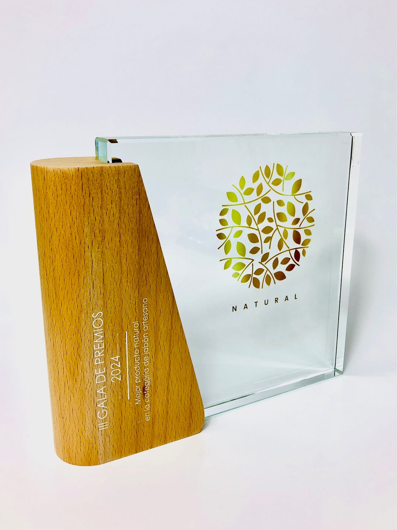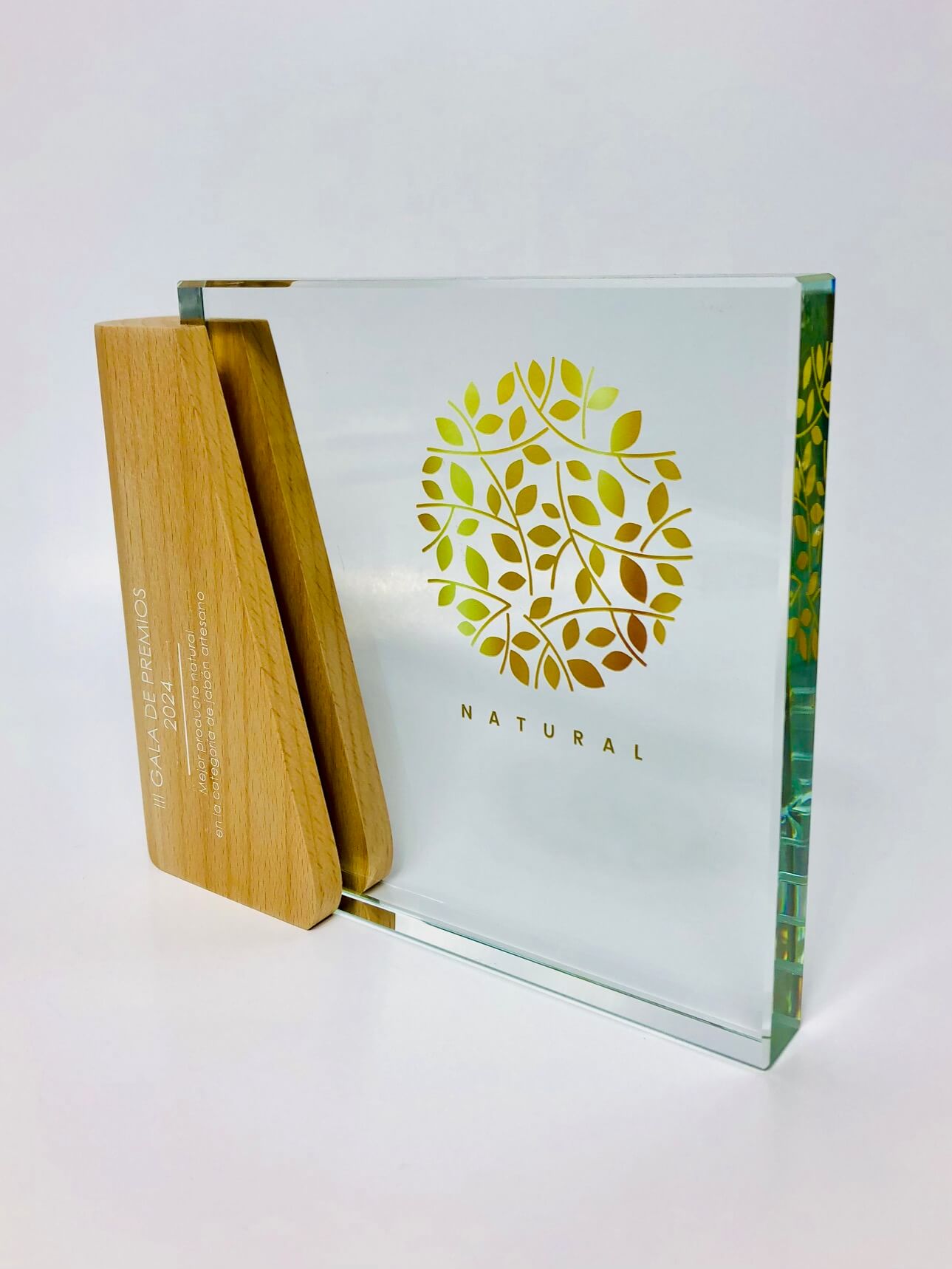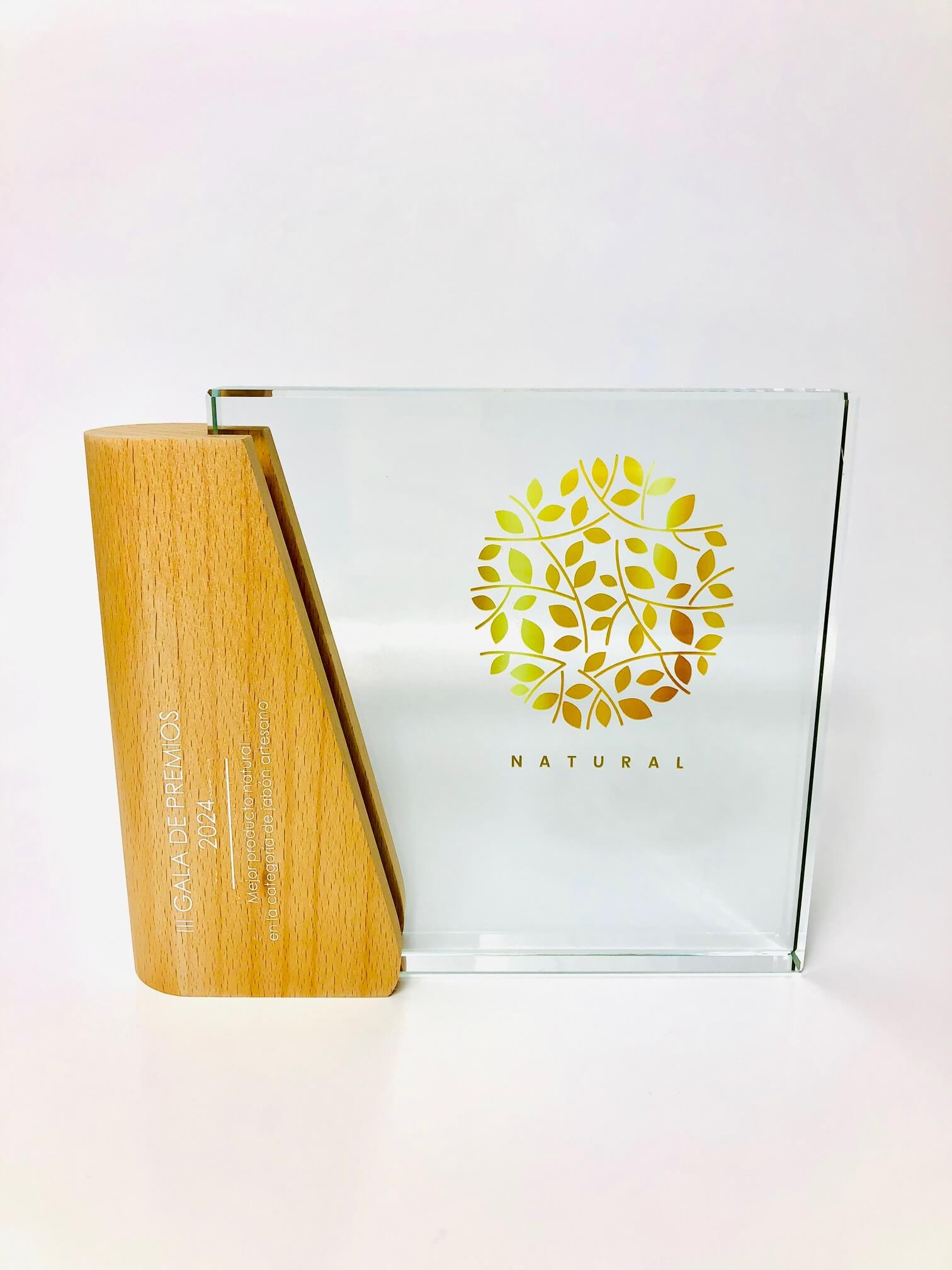 Premio de cristal óptico transparente de 2cm de grueso y base de madera canadiense para personalizar con su diseño a color, incluidos, logos, textos, etc.